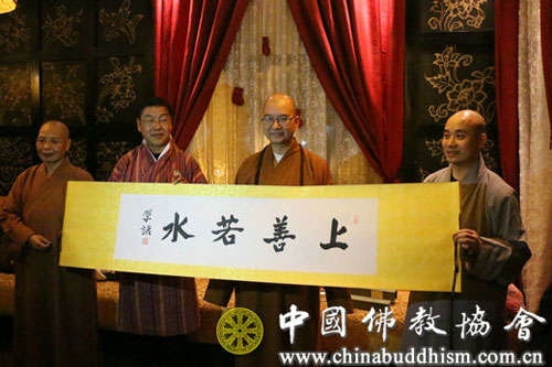 菩萨在线海外讯 为加强与不丹佛教界的交流与联系,增进中不两国佛教的法谊友情,中国佛教协会组成以会长学诚法师为团长,以副会长如瑞法师、宗性法师为副团长,以秘书长刘威先生为代表团秘书长,以国家宗教事务局外事司副司长薛树琪先生为代表团宗教顾问,以外交部亚洲司二秘罗冲先生为代表团外事顾问的中国佛教友好代表团,赴不丹进行友好访问和佛教交流。