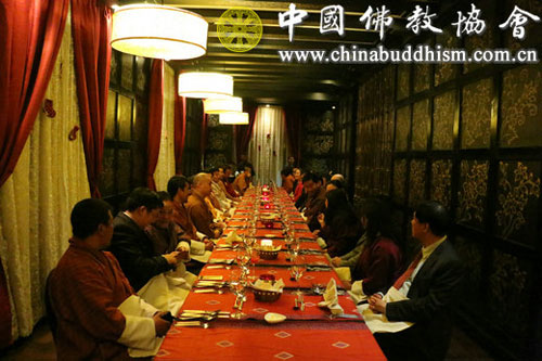此次是中国佛教界首次正式组团对不丹进行友好访问,受到不丹政府的高度重视。当地时间2016年12月21日晚,不丹内政与文化部、外交部、中央寺院委员会、旅游局等多个部门在代表团下榻酒店举行友好招待会,欢迎代表团一行的到访。不丹内政与文化大臣达瓦•坚赞(Dawa Gyeltshen)先生、外交大臣丹曲•多吉(Damcho Dorji)先生、内政与文化部常务副部长索南•托杰(Sonam Topgay)先生、外交部常务副部长策林•多吉(Tshering Dorji)先生、中央寺院委员会秘书长嘎玛•策林•纳姆耶尔(Karma Tsering Namgyel)先生等出席友好招待会,与中国佛教友好代表团在轻松、愉快、友好的氛围中进行了广泛而深入的交流。