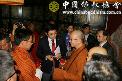不丹外交大臣丹曲·多吉先生专程来到晚宴现场与学诚会长交流