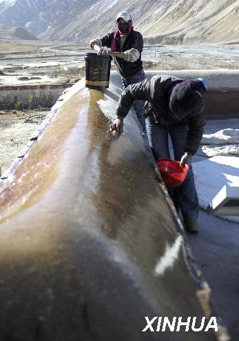 据次仁扎西介绍,按照修旧如旧的原则,科迦寺维修保护一期工程主要是对两大主殿进行保护性维修,包括屋顶加固、清理,防渗水处理,建筑结构性变性和断裂修复。为确保工程质量,阿里地区文化局还采取了专人常驻监督、每周定期检查等方式对工程进行全程跟踪。