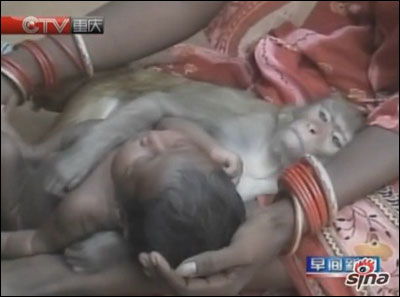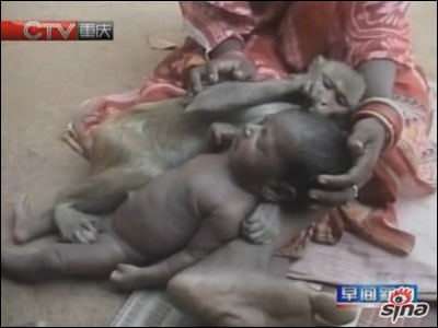 在印度一户普通的人家孩子降生后,保姆就自动送上了门,奇的是这个保姆却是一只猴子。