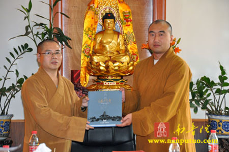 座谈中,界象法师首先向考察团介绍了闽南佛学院的基本概况及学院行政管理方面的情况。随后,参访团就闽院领导班子、制度建立、教学重点、课程设置、经费、师资、学僧生活以及学院与寺院的关系等问题与闽院法师们进行了探讨、交流。最后,彻性法师代表考察团一行向闽院法师们的热情解答表示衷心的感谢,双方互赠礼品留作纪念。