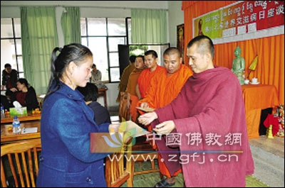 11月27日,云南西双版纳傣族自治州“佛光之家”举行世界艾滋病日座谈会暨联欢会,迎接即将到来的第22个世界艾滋病日(12月1日)。来自西双版纳州佛教协会、州民族宗教事务局、西双版纳总佛寺的有关人员及20位关怀对象参加了活动。云南省西双版纳州佛教协会副会长、景洪市佛教协会会长都罕听法师在活动中表示,僧人要用佛教的慈悲之心来关怀被艾滋病折磨的人们,营造和谐的社会环境,同时也要用佛教精神来约束人们的行为,预防艾滋病。
