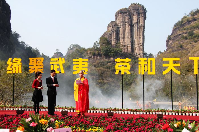 今天,以“缘结武夷,茶和天下”为主题的国际禅茶文化节在武夷山隆重开幕,儒释道三教泰斗和各界嘉宾在此以茶会友、品茶论道,正预示着中国优秀传统文化的全面复兴,也预示着中华茶文化不断走向世界。