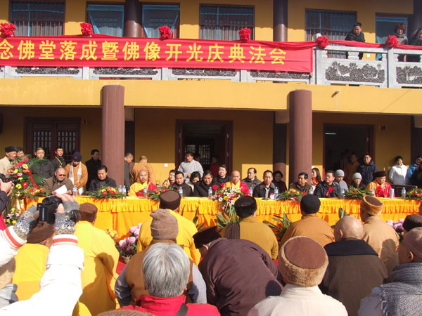 开幕式后,果光大和尚主法并与河南开封市佛教协会秘书长、开封古观音寺住持会心同大和尚,九里山白云寺住持明德法师共同为念佛堂佛像开光。开光结束后,众多信徒纷纷涌进念佛堂叩首膜拜,祈望国泰民安,四季吉祥。