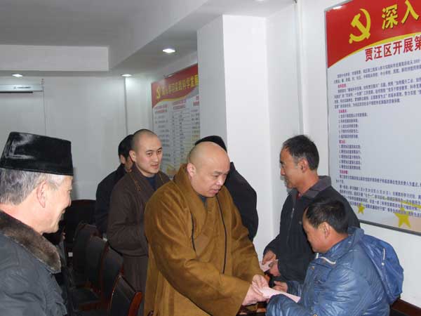 2010年2月7日,江苏省宗教局副局长沈祖荣、江苏省宗教局宗教一处处长李华廷、江苏省宗教局办公室张国华,江苏省佛教协会副会长、徐州市佛教协会会长果光大和尚,江苏省佛教协会副秘书长大初法师,江苏省佛教协会副秘书长陈建华在徐州市民宗局副局长康高朝、徐州市民宗局民宗处处长韩伟的陪同下到贾汪区夏桥办事处慰问少数民族困难户。
