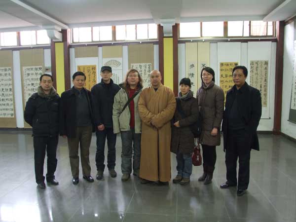2010年2月8日,中国美术学院油画系研究生、杭州师范大学教授、油画家、摄影家靳庆金先生,杭州师范大学系主任助理杨毅一行来江苏徐州兴化寺参观果光大和尚书画展。