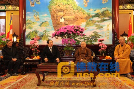 2010年2月10日上午,在新春佳节即将来临之际,中共中央统战部常务副部长朱维群一行到中国佛教协会看望并慰问中国佛教协会会长传印长老、副会长学诚法师等中佛协工作人员。