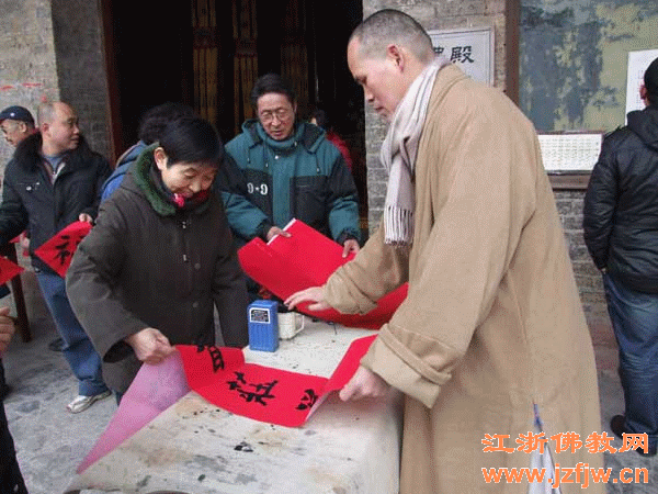 2010年2月12日上午,徐州兴化寺组织法师现场泼墨书写“福”字赠送春联的祈福活动。