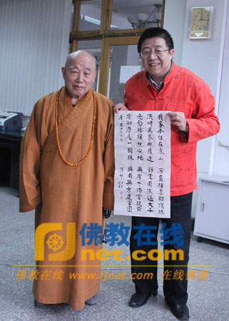 专访进行了将近2个小时,传老还就讲经说法、佛学院建设等相关问题认真回答了本网记者的提问,并向本网题赠了寒山大师的诗文。(佛教在线记者奉音(等人) 现场报道)