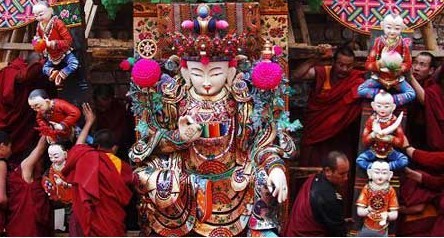 酥油花是塔尔寺“艺术三绝”之一,由寺院艺僧以酥油为原料精雕细捏而成,以神像、人物、飞禽走兽、花草树木等为主要内容,形象逼真、色彩丰富,具有很高的艺术水平和独特的艺术魅力。