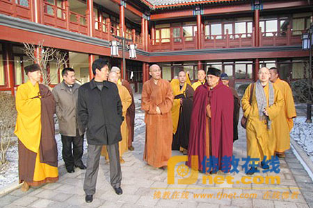 会后,明哲长老一行到菩提寺,检查了各项工作并亲切看望、慰问了全体僧众。明哲长老随行人员有市佛协心见法师,市宗教局二处郑立升,青岛市佛教协会秘书长、菩提寺监院妙智法师参加了会谈,并陪同了参观。