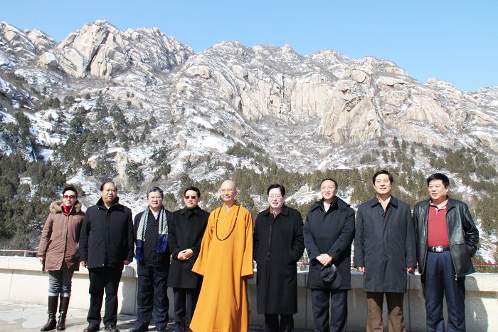 3月9日上午,海淀西山一片晴雪,难得的北国风光。国家宗教事务局王作安局长、蒋坚永副局长、办公室张乐斌主任、一司徐远杰司长、王哲一、刘威副司长;中央统战部二局袁莎副局长、褚有奇处长来到北京龙泉寺视察工作,受到龙泉寺方丈学诚大和尚以及僧俗二众的热烈欢迎。陪同前来的有关方面的领导还有北京市宗教局申建军局长、海淀区委关成启副书记,傅首清副区长,海淀区政协副主席、统战部长刘恪女士,区民宗办刘希英主任。王局长一行参观了寺里的各方面建设后,与大家进行了有关佛教方面的工作座谈,并与寺里的僧众、义工进行了欢快的交流,对龙泉寺开放近五年来的工作给予了充分肯定。