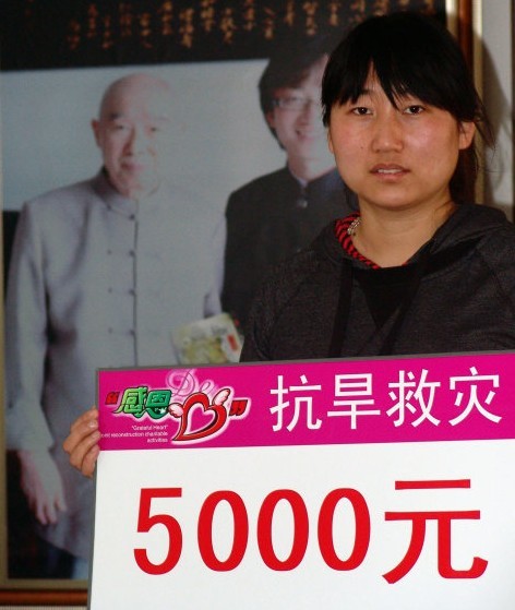 值此灾荒,以“行愿方菩提,联合生莲花”为理念的“正心堂”再次发起“感恩的心—抗旱救灾”捐款倡议活动,正心堂全体同仁携诸爱心人士,率先捐赠2万元现金于红十字会、儿基会、扶贫基金会的三大抗旱行动,并愿无偿捐献价值8万元的《超越轮回》正版光盘,用于更好的鼓舞社会善心人士的慈心善行,以救灾荒。