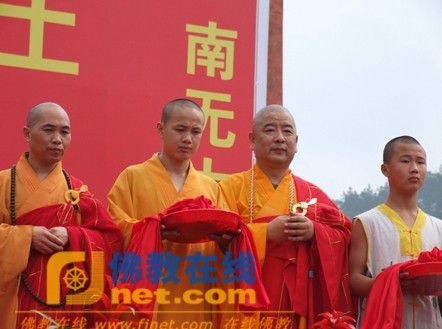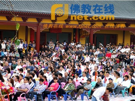 开光法会典礼结束后,来自河南嵩山少林寺武术学校的武僧为嘉宾们进行了精湛的武术表演;下午3时,上林县莲音寺住持昌杰法师、辽宁归茗寺住持通逵法师共同主法,引领信众举行了放生法会。