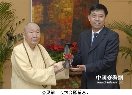 2010年5月6日晚,陕西省台办主任闫超英会见台湾中台禅寺惟觉长老率领的赴陕参访团一行。惟觉长老表示,两岸关系和平发展“百尺竿头更进一步”,还需要包括佛教界在内的两岸同胞共同努力。