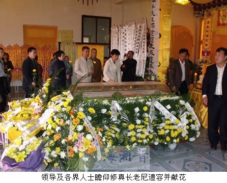大连市民族宗教事务局季永斌副局长、张莉处长、李辉处长,普兰店市民族宗教事务局领导,中国佛教协会会长传印长老代表性然法师、大连市佛教协会会长果明法师、副会长义辉法师、副会长于今居士、以及修真长老尼生前好友、皈依弟子和社会各界人士千余人参加了法会。
