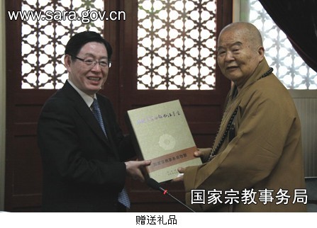 2010年5月12日下午,国家宗教事务局王作安局长会见了台湾佛光山开山宗长星云法师一行,蒋坚永副局长及局内有关司室负责人陪同会见。