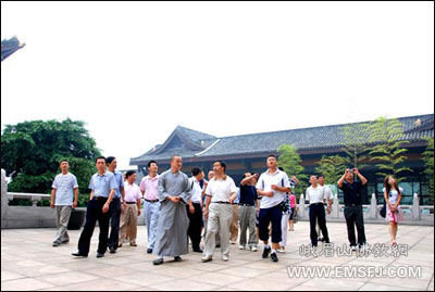 8月12日,由四川省蒲江县政协主席吴立民一行28人组成的蒲江县政协“旅游文化考察团”在峨眉山市政协办公室主任苟月华等的陪同下,来到峨眉山大佛禅院参访,峨眉山大佛禅院知客昌林法师等热情接待。