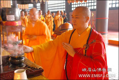 8月12日,峨眉山大佛禅院隆重举行消灾祈愿法会。法会恭请峨眉山佛教协会会长永寿大和尚拈香主法,来自香港的300余信众与峨眉山的法师们一起诵经祝祷,祈福迎祥。