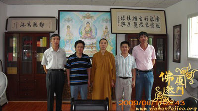 8月11日,厦门市民宗局副局长蔡永华、一处处长黄镇辉一行视察觉性院。上午10时,蔡永华副局长一行光临觉性院视察指导,看到正在进行的法会的场面,十分高兴,欣慰的说:有这样的进步了不起,工作上给予肯定。同时指出,法会的音量要适度,扰民就不好了。接着进行座谈,觉性院住持德煌法师介绍了寺院现在的情况及修行、生活情况,并感谢宗教领导给予的关心和指导。