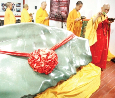 2008年7月29日,归元寺为一块巨大的稀世和田玉举行开光仪式。本报记者赵端摄