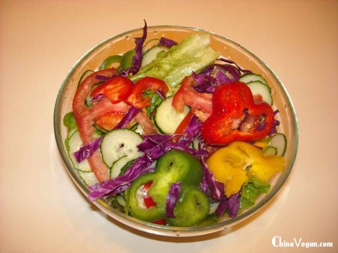 使用色彩丰富的蔬菜配制沙拉, 如黑豆, 切片红甜椒,切碎的萝卜,切块的红卷心菜或西洋菜。这样您做的沙拉不仅好看,味道也极佳。