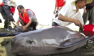 最近,一张照片吸引了人们的眼球:一条正在接受专家检查的长江豚的脸上挂着一行泪。原来,由于连日干旱,长江中下游水位业已降至历史最低水平,而位于湖北省石首市的天鹅洲国家级长江豚类保护区的水位、水体面积也是如此,湖区大部份深不足3米,个别地方甚至低于2米。或许长江豚的泪水是在为自己未来的命运担忧?亦或在控诉人类对环境无休无止地破坏?
