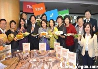 据台湾今日新闻网4月22日报道:台南市政府推动低碳饮食,发起「422地球日低碳蔬食」活动,得到台南市议会支持。台南市长赖清德及市议会议长赖美惠22日联袂率同市府主管及42位市议员在议会享用蔬食餐,齐声吁请市民改变饮食习惯,多吃蔬食少吃肉,减缓地球暖化带来的极端气候。