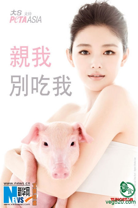 曾荣获善待动物组织09年度亚洲最性感素食艺人的大S表示:“动物就像我们的家人、兄弟姐妹和朋友;我们是同类而且我们都是平等的,我爱所有动物,所以我不会吃它们。”