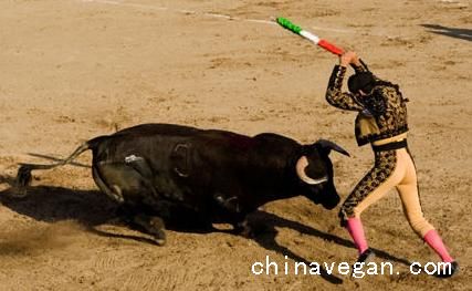 西班牙斗牛过程其实很简单,就是先把公牛惹怒,然后,两名身骑高头大马的刺斗士,手持长矛,直刺牛背,把牛背刺得血流如柱。接着两名梭镖手将带弯勾的梭镖准确无误地插入正在流血的牛背处,每次两镖,共投三次。最后斗牛士出场,他先把公牛累得筋疲力尽,再由杀牛手举起长剑直刺牛的心脏,公牛顿时鲜血喷涌,倒地而毙,惨不忍睹……斗牛士却在凯旋的乐曲声中接受观众的祝贺。