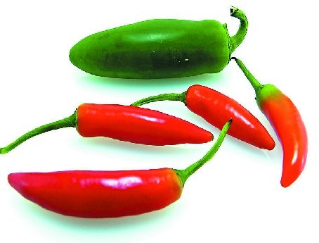 辣椒性热味辛,含有B族维生素、维生素C、蛋白质、胡萝卜素、辣椒碱、柠檬酸、铁、磷、钙等多种营养成分,尤其是维生素C的含量非常高,在蔬菜中名列前茅。它具有温中祛寒、开胃消食、发汗除湿的功效,还有一定的杀菌作用,对预防感冒、动脉硬化、夜盲症和坏血病有比较好的效果。辣椒还有预防癌症、延缓衰老的作用,特别是红辣椒在民间享有“红色药材”的美称。由于它性大热,刺激性强,不宜多吃,那些有眼部炎症、胃溃疡、高血压、牙痛、咽喉炎等感染者应忌食。