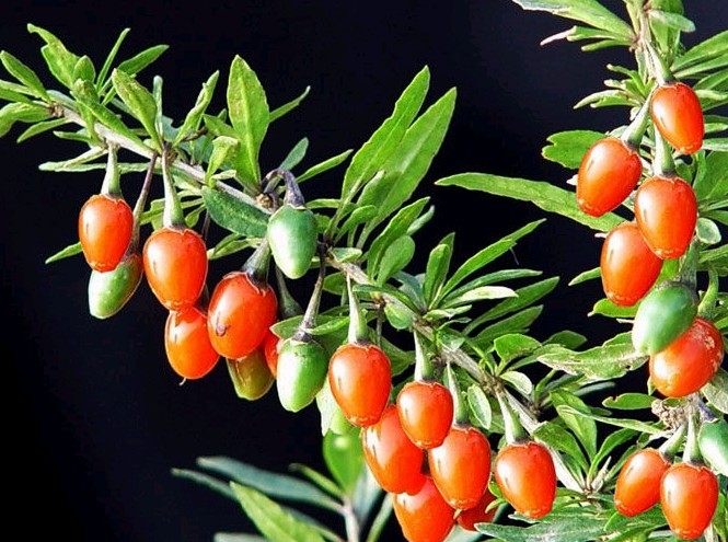 七、枸杞子 《神农本草经》称枸杞子“久服坚筋骨,轻身不老,耐寒暑”。《本草汇言》赞之“使气可充,血可补,阳可生,阴可长”。枸杞子有类似人参的作用,且能抗动脉硬化、降低血糖、促进肝细胞新生等作用,服之有增强体质,延缓衰老之功效。