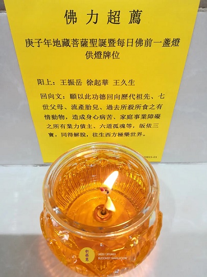 2、请24小时莲花灯,均起供独立牌位,并添加回向文;请8小时酥油灯,供灯牌位仅添加阳上人姓名,不添加回向文。