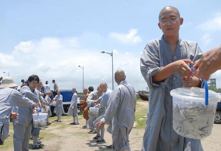 智者大师的放生思想及其影响(图片来源:资料图) 编者按:放生,一直是佛教徒具有神圣认同感的宗教实践之一。那么,放生有着怎样的历史缘起?其发展形式和理念经历了哪些变化?本文作者对智者大师放生思想的解读进行了认真的梳理,并高度肯定了智者大师放生思想在中国佛教放生史举足轻重的影响力。本文经七位专家组成的评审委员评审,被评选为首届中华佛教宗风论坛美文征集获奖作品。现摘录部分与广大网友分享。 放生,一直是佛教徒具有神圣认同感的宗教实践之一。在佛教的放生观点中,认为所谓放生,就是将被捕获之鱼、鸟等生类放之于山野或池沼之中,使其不受人类宰割、烹食,使其重获生命自由。在放生的同时,为举行放生仪式,即予以放生物食物,并为之授“三皈戒”及解说大乘经典等,以结法缘。 在佛教中,“放生”主要缘于佛教中“戒杀护生”的思想,如《梵网经》卷下云: “若佛子以慈心故,行放生业:一切男子是我父,一切女人是我母,我生生无不从之受生,故六道众生皆是我父母,而杀而食者,即杀我父母,亦杀我故身。一切地、水是我先身,一切火、风是我本体,故常行放生。生生受生常住之法,教人放生;若见世人杀畜生时,应方便救护,解其苦难。” 出家修道者以悲悯众生为念,故而戒杀生食肉,基于此乃有救护、放生之举。因此,放生可以说是戒杀、素食的发展。如果说不杀生、素食是对生命的消极保护,那么,放生就是对生命的积极保护。 在中国,“放生”一词,最早见于《列子•说符篇》: “邯郸之民,以正月元旦献鸠于简子。简子大悦,厚赏之。客问其故。简子曰:正旦放生,示有恩也。” 放生这一习俗,有着其悠久的发展历史,始自齐梁时代就有施行,但是当时放生之举更多的只是出于儒家“好生之德”的思想。不过,中国初期的佛教“放生”更多是是建立在“戒杀护生”的思想上,只能说是个人慈心善举的一种表达,基本上属于个人行为,并末能形成有一定规模和组织性的。可知,中国早期佛教放生思想的形成,既有佛教戒杀护生的思想根源,同时亦受到儒家好生思想的推动。但是,佛教放生之精神内涵重在“法食两施”,此也是有别于儒家的“好生之德,放生之举”的地方。而在放生池中放生,并为放生物传授“三皈戒”,解说大乘经典等,以结法缘, “方舟江上讲《流水品》,又散粳粮为财法二施。” 天台智者大师实为首例。正是在智者大师的极力倡导下,遂使得放生活动遍及于全国且流传并影响至今。 一、智者大师放生思想形成的背景与体现 智者大师(538—597年),生于烽火动荡的南北朝时期,父兄皆任梁朝命官。虽出身官宦之家,但由于时局动乱及父母亡故,因深体无常而于十八岁,礼长沙果愿寺法绪大师出家。二十三岁时,往大苏山,求受慧思禅师教导,劝修法华三昧,之后于金陵瓦官寺讲学。三十八岁时,栖隐天台山,于华顶峰降魔,证悟法华圆顿中道实相,由此奠定天台教学之基础。尔后,再至金陵讲说天台三大部,六十岁(陈开皇十七年),于天台山石城寺入灭。综观大师一生,可分为生长、师承学习、著述讲学等时期。而其放生思想,乃栖隐于天台期间形成。 据《别传》记载,太建七年(575)智者大师入天台山后,当时的天台属于临海郡辖内,大师见天台山麓临海之民日以渔捕为业,罾网相连四百余里,江溪簄梁六十余所。当地黎民都以渔捕为业,在溪流的上游筑梁使水决流他方,从而断了下游的水,使下游的断水,以方便捕鱼。或有在海湾处用簄(竹篱笆或竹网)围起来, 涨潮的时候,鱼虾之类海物便随潮进入海湾,退潮时鱼虾之类却因簄拦住而逃脱不了。因此,此种方法当地居民竞相为之。从而“渔捕簄业,交横塞水”,鱼类纷纷被困而捕,故“杀戳既多,煮炙无算”。另外,有甚至由于数量实在太多而来不及收拾,结果鱼虾之类“髗骨成岳,蝇蛆若雷”,从而使得臭气熏天,髗骨遍地,惨不忍睹。这不但“水陆可悲”,亦造成“公私去来(船只)频遭没溺,以此死亡不可称数”。见此情景,智者以大慈大悲的心怀,发动僧众“货(卖)衣资什物”,从渔主孔玄达等人处赎买鱼簄(编竹为栅,置溪中以截鱼之去路而捕取的渔具),同时宣扬放生的功德,使始丰溪“永作放生之池,变此鱼梁,翻成法流之水”。 在此间,智者大师还对放生的善信授三皈依,说大法以结法缘。“于天台栖隐期间,讲述此经《流水长者品》,度化渔民,并立放生池”。因此可知,大师的放生思想正是在天台山栖隐期间所形成。《金光明经》为天台五小部之一,也是智者大师十分重视的经典之一,其曾深加研究并对众讲说,并著有《金光明经玄义》和《金光明经文句》两个疏解本(由灌顶记录整理)传世。而智者大师的放生思想,很大一部分程度也应是受到《金光明经•流水长者品》中流水长者子救鱼放生的典故影响。 对于智者大师放生思想的具体体现有以下几点: 1、买断簄梁,悉罢江上采捕 大师因见天台山麓临海之民日以渔捕为业,罾网相连四百余里,江中设捕鱼的竹墙,及溪里筑的捕鱼孔堰,大小不下六十余所。智者大师看了心中大是不忍,故生“恻隐观心”,不忍“彼此相害”,为令“劝舍罪业”,于是大师自己带头,发动僧众信徒“货衣资什物”甚至“金帛”,向土民孔玄达等人,赎“买兹簄业, 永当放生之池”,令“变此鱼梁,翻成法流之水”。 2、请讲《金光明》,感舍簄业 当时,临海内史计诩(计尚儿)敬