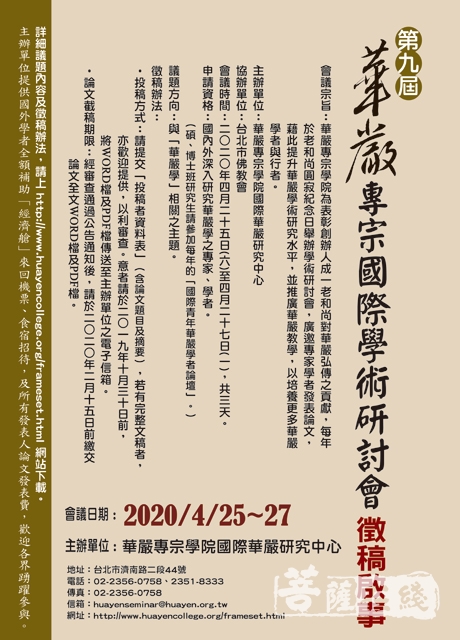 (转载自:台北市佛教会,原标题:2020第九届华严专宗国际学术研讨会征稿启事 )