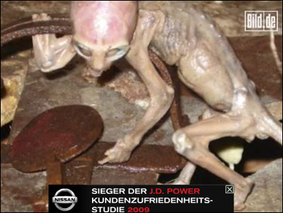 明星主持人、同时也是一位飞碟专家的茂森在其节目中指着已经被制成标本的外星人宝宝的照片,兴奋地说:“我敢肯定这些照片都是真的!”