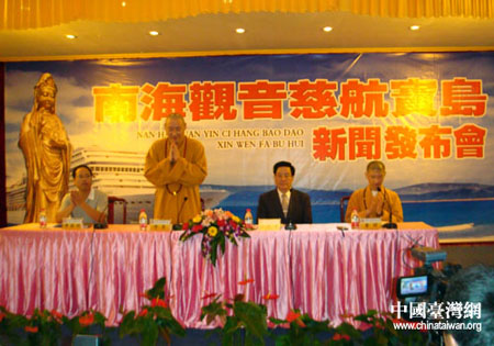 日前,由台湾南海观音文教基金会发起,普陀山佛教协会与台湾中华护僧协会主办,台湾四大民间观音法脉月眉山、法云寺、观音山、大岗山协办的“南海观音慈航宝岛”大型两岸佛教文化交流活动新闻发布会在观音圣地——浙江省普陀山召开。