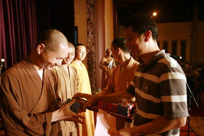 茶会上,各殿堂法师和居士义工分别表演了拳棍禅武、相声乐唱和器乐演奏等精彩节目。此次茶会共设立有庄严奖、聪辩奖、音声奖、禅武奖、和合奖等多个奖项。