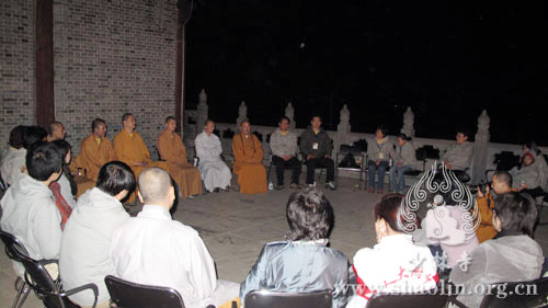 明月之下,禅堂之上,青松翠柏之间,少林寺方丈永信法师同大家一起赏月品茶,共话少林文化。永信法师希望通过这个平台能够促进大家的真修实证。学员们纷纷表示,此次到了少林寺才明白,如果想了解真正的少林文化,必须走进少林寺,亲近少林寺的禅师,这样才能理解和感悟到真正的少林文化精髓。