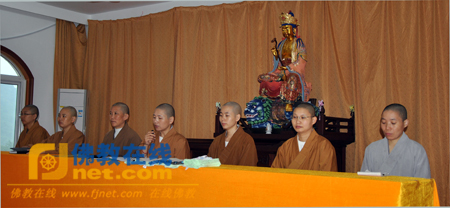 首先,由法印法师宣布了新学期的安排,除了平时的课业不变外,还在每天晚上增加了一个小时的念佛共修时间,由诸位法师带领,在诵经堂集体念佛,以促使学僧们学修并进。