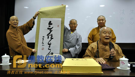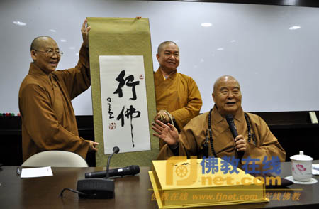 星云大师亲题三幅墨宝:“行佛”、“生忍法忍”、“无住生心”,分赠本英法师、悟法法师、颜修法师。 (图:人间社)
