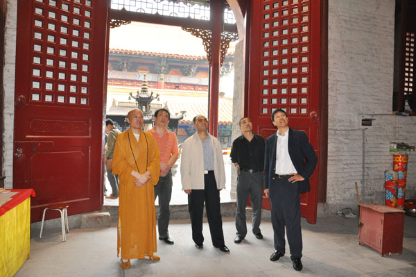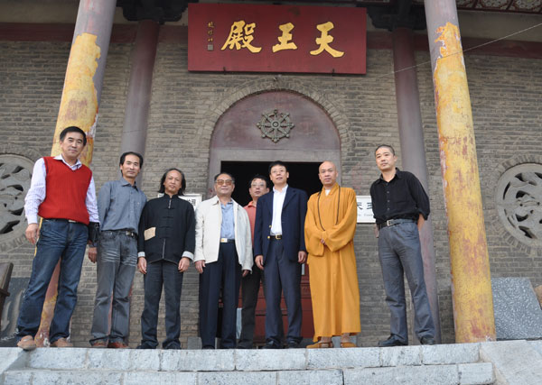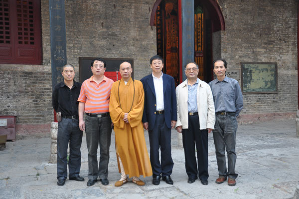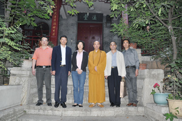 江苏省佛教协会副会长、徐州市佛教协会会长、兴化寺方丈果光大和尚热情接待了来客,陪同客人参观了唐宋摩崖石刻造像室、大雄宝殿、大佛殿,介绍了兴化寺建筑沿革历史,特别对北魏大石佛作了详细介绍。临别,果光大和尚将自己的著作《大道无言》、《西行漫吟》、《果光书法集》、《华开见佛——果光山水画作品》等赠与客人结缘,并合影留念。(江苏徐州佛协 霍钦瑞 供稿)