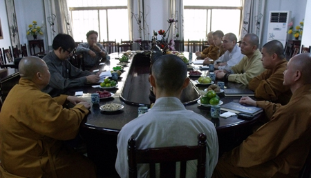 2010年10月11日上午,江苏省汉传佛教讲经交流会巡讲预备会在南京古鸡鸣寺召开。南京市栖霞寺方丈隆相法师,古鸡鸣寺住持莲华法师,省佛协副秘书长陈建华,南京大学杨维中教授以及参加此次巡讲的六位法师参加了此次会议。