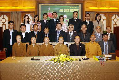 应越南全球视听公司(AVG)主席范日武之邀,佛光山人间卫视公司董事长慈容法师率总经理觉念法师等一行,于2010年10月13日下午到该公司访问,双方并举行缔盟签约仪式。
