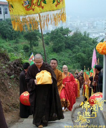 2010年10月13日(农历九月初六),福建省福鼎市深云寺彩旗招展,梵呗声声,庄严肃穆,妙华长老舍利进塔安奉追思法会在深云寺隆重举行。来自海内外的诸山长老、法眷弟子和各地善信近1000人参加法会。