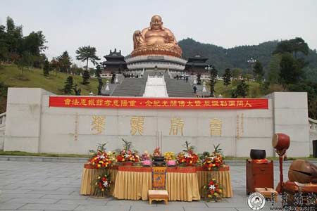 十点左右,龙华广场上法师云集,花团锦簇,纪念人间弥勒诞辰暨大佛开光法会隆重举行。2008年的11月8日,全球最大的露天铜姿弥勒佛像落成开光,海内外高僧云集雪窦,数千名信众共襄盛事。自此,雪窦山成为海内外信徒、游客朝拜的弥勒圣地,雪窦寺也成为弥勒信仰的中心。