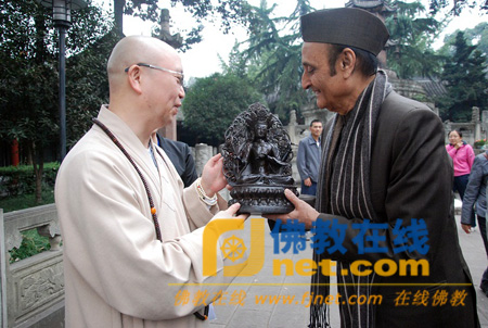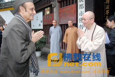 2010年10月24日上午,印度文化关系委员会主席卡兰·辛格一行七人到四川成都文殊院参访。文殊院首座智海法师及监院宏开法师等热情接待卡兰·辛格一行,并陪同其参观寺院。