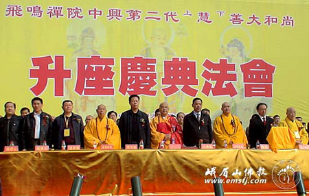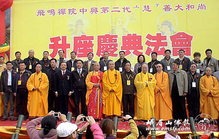 当天上午11时,慧善法师荣膺飞鸣禅院中兴第二代方丈升座庆典法会在一片喜庆祥和的气氛中圆满结束。