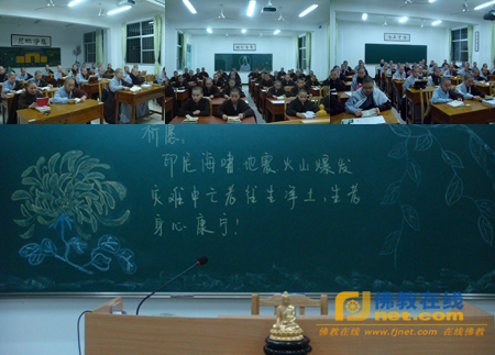 获知印度尼西亚因地震、海啸和火山喷发等自然灾害接连不断受灾严重的消息后,福建佛学院女众部组织全体学僧为遇难灾民诵经祈福,祈愿:亡者往生净土,生者吉祥安康,早日重建家园。并祈世界和平,国土安宁。